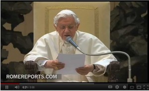 – Benedict XVI today resumed his general audiences in the Vatican, having held them at Castelgandolfo during the month of August. Meeting with faithful in the Paul VI Hall he turned his attention to prayer in the Book of Revelation which, he explained, “presents us with the living breathing prayer of the Christian assembly, gathered together ‘on the Lord’s day'”.Revelation, Pope Benedict went on, “is a difficult book, but one of great richness. … In it a reader presents the assembly with a message entrusted by God to John the Evangelist. … From the dialogue between them a symphony of prayer arises which is then developed in many different forms up until the conclusion”.The first part of Revelation presents us with the assembly in prayer in three successive phases. The first of these highlights how “prayer is, above all, a listening to God Who speaks. Engulfed as we are by so many words we are little used to listening, and especially to adopting an interior and exterior attitude of silence so as to attend to what the Lord wishes to say to us. These verses also teach us that our prayers, often merely prayers of request, must in fact be first and foremost prayers of praise to God for His love, for the gift of Jesus Christ which brought us strength, hope and salvation. … God, Who reveals Himself as the beginning and the end of the story, welcomes and takes to heart the assembly’s request”.This first phase also includes another important element. “Constant prayer revives in us a sense of the Lord’s presence in our life and history. His presence supports us, guides us and gives us great hope. … Prayer, even that pronounced in the most extreme solitude, is never a form of isolation and it is never sterile, it is a vital lymph which nourishes an increasingly committed and coherent Christian existence”.In the second phase of the prayer of the assembly “the relationship with Jesus Christ is developed further. The Lord makes Himself visible, He speaks and acts, and the community, increasingly close to Him, listens, reacts and accepts”.In the third phase “the Church in prayer, accepting the word of the Lord, is transformed. … The assembly listens to the message, and receives a stimulus for repentance, conversion, perseverance, growth in love and guidance for the journey”.“The Revelation”, Benedict XVI concluded, “presents us with a community gathered in prayer, because it is in prayer that we gain an increasing awareness of Jesus’ presence with us and within us. The more and the better we prayer with constancy and intensity, the more we are assimilated to Him, and the more He enters into our lives to guide them and give them joy and peace. And the more we know, love and follow Jesus, the more we feel the need to dwell in prayer with Him, receiving serenity, hope and strength for our lives”.